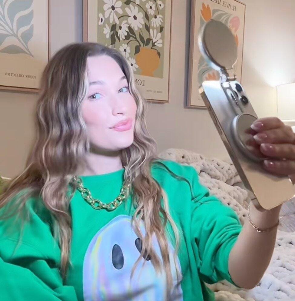 Yes — it includes a built-in mirror that lets you see exactly what your phone’s rear-facing camera sees, so you can frame yourself perfectly, check your look, and use your best camera without guesswork. This doubles it as a beauty accessory and a creator tool.